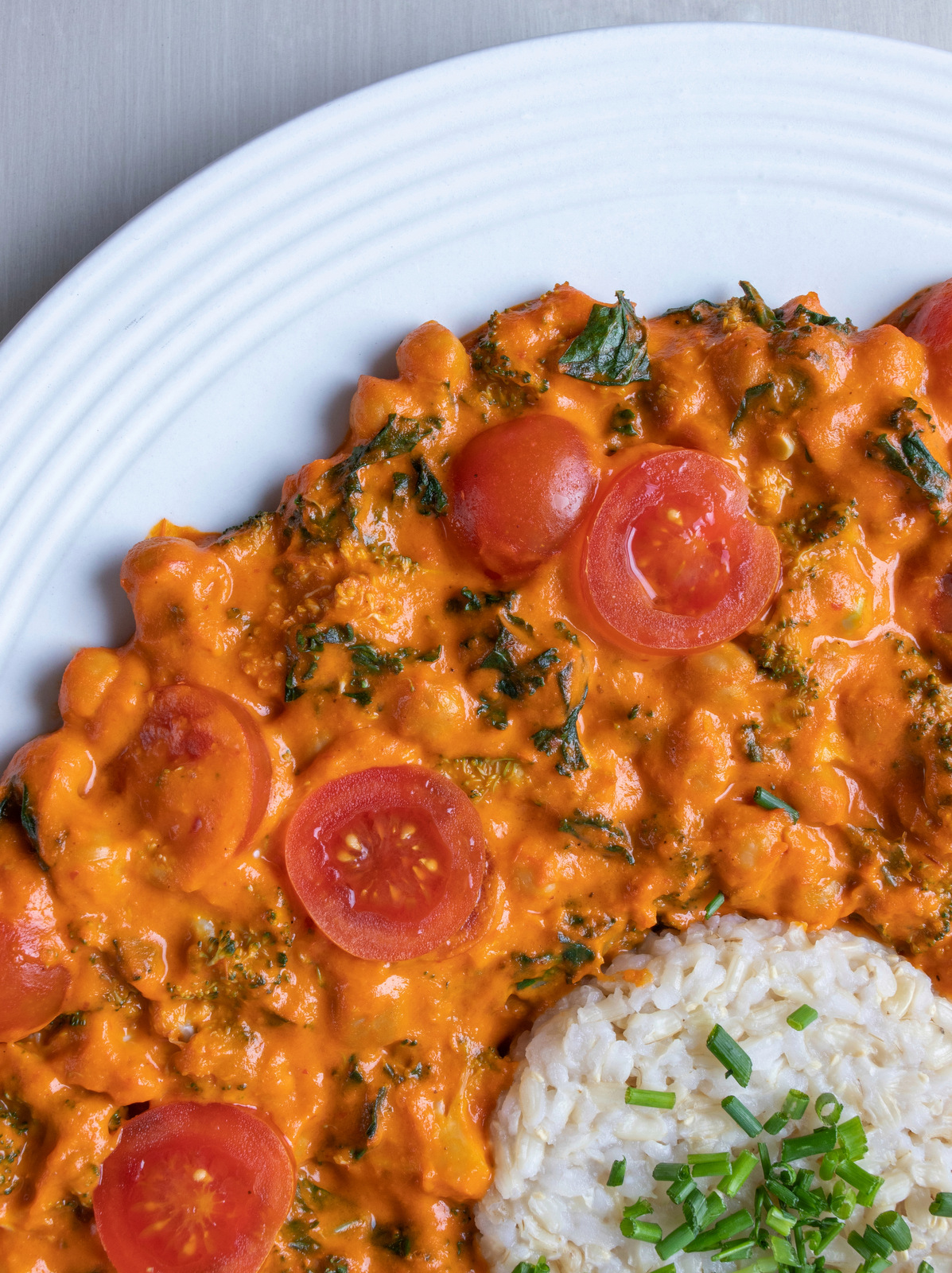Chickpeas in a roasted bell pepper coconut sauce